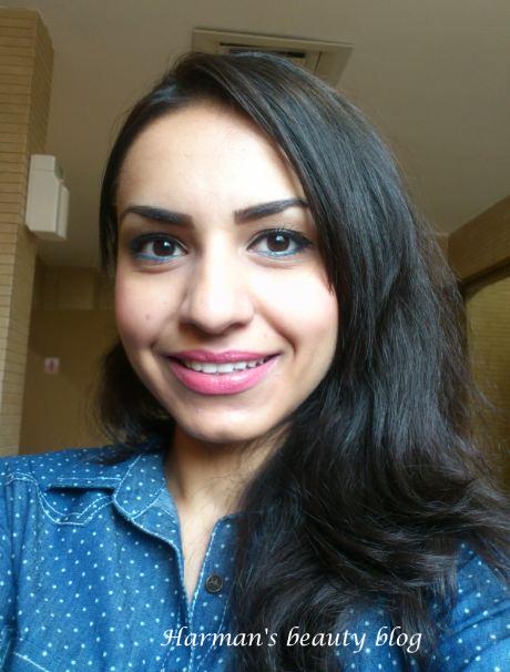 Face: – Lotus SPF 40 matte look sunscreen lotion, Rimmel stay matte pressed powder, Physicians formula blush