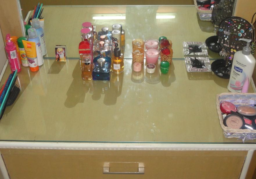 Today I thought I would post something different. This post is going to be about what all I have on my vanity table. I have tried to keep it empty but these are the things that I do require there. Hope all of you like this one 🙂